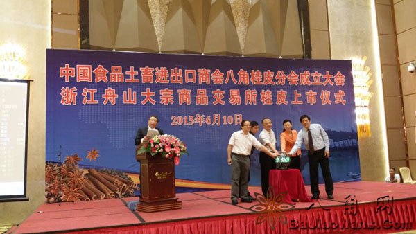 2015年6月10日,商会八角桂皮分会在广西梧州市成立,200多名业内代表参加会议,表决通过了分会章程,选举了理事会。会议同时宣布桂皮在浙江舟山大宗商品交易所上市。戎卫东副会长出席会议并致辞。会后,商会考察了梧州八角桂皮与松香的产地和企业。